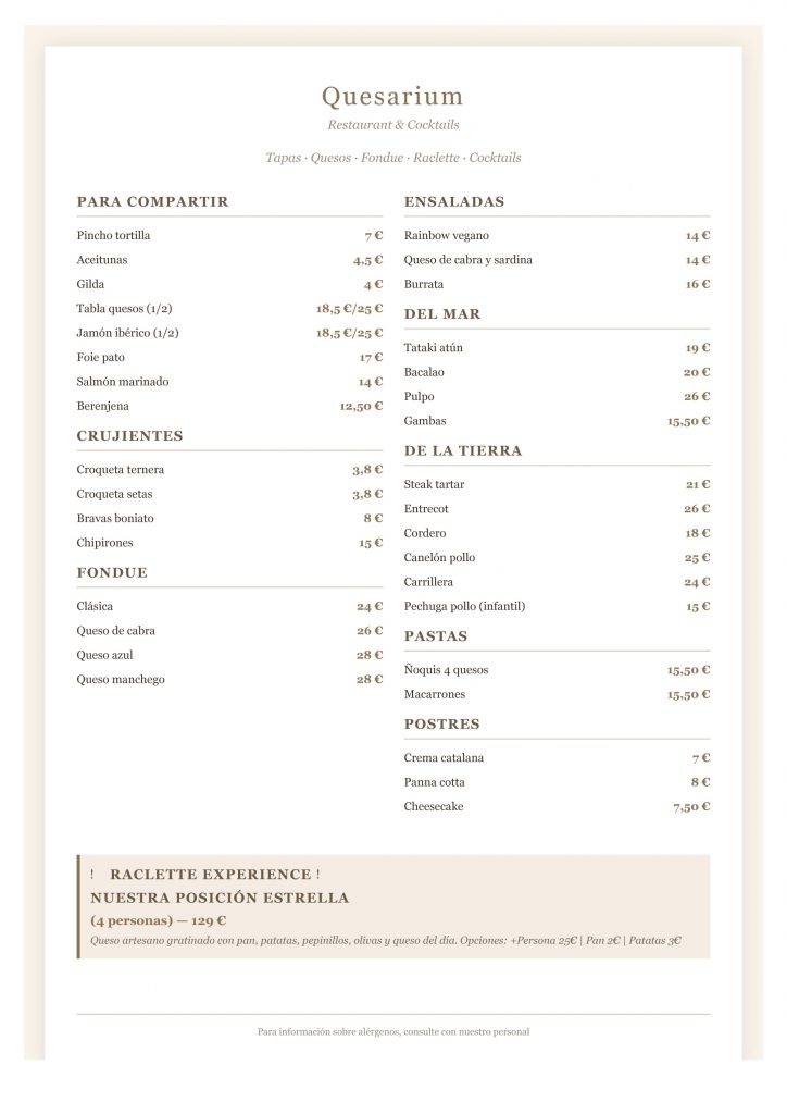 In short, I highly recommend the Cheese Bar by Quesarium. The food is delicious, the atmosphere is cozy and the service is friendly. 100% recommendable!